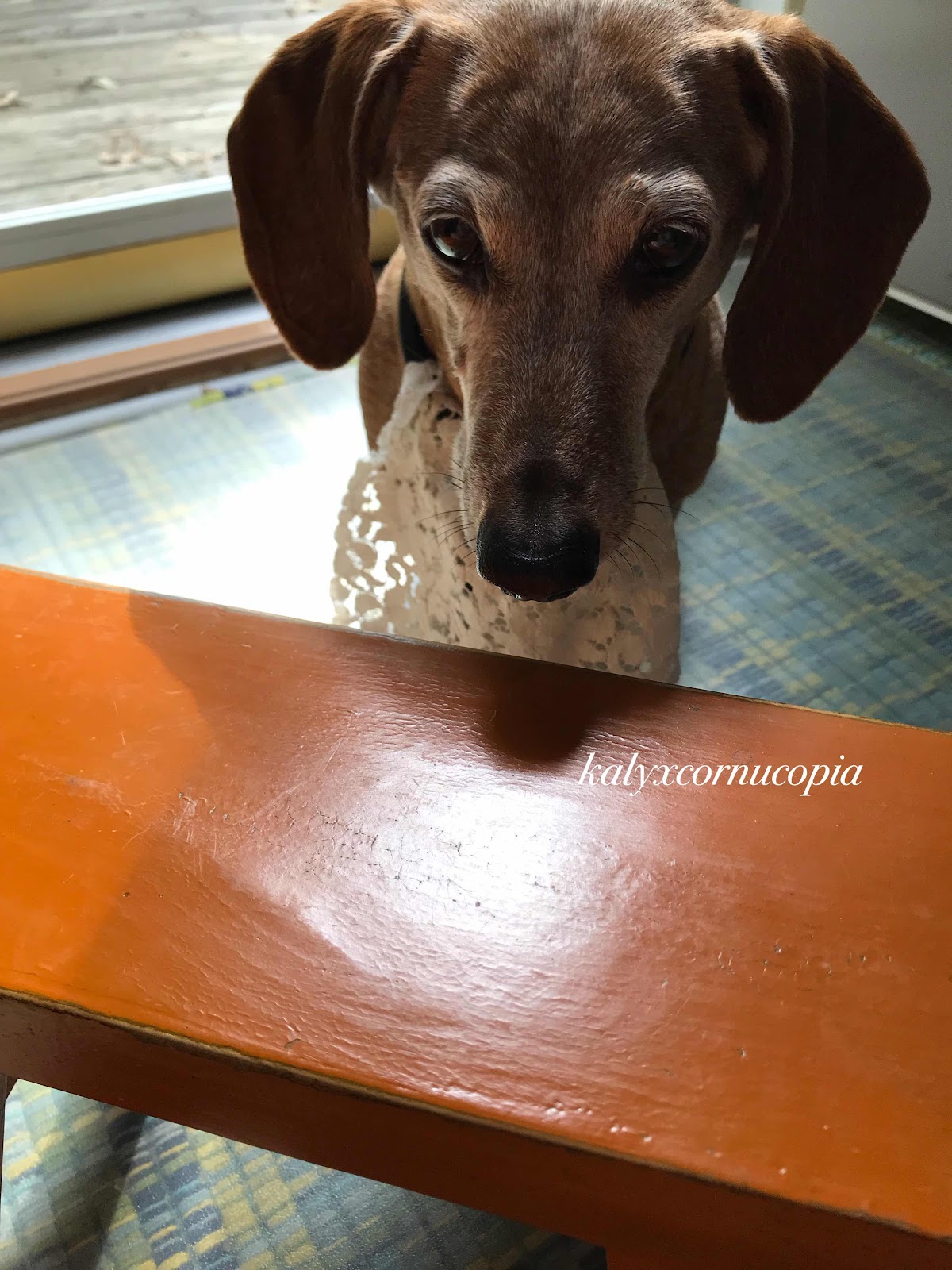 The little dachshund sighed as he looked down at the empty spot before him. Not only had he tidied his bed and brushed his teeth and licked his tushie clean as a whistle (an act of questionable merit, he knew, but one that he felt should still technically count as personal hygiene) , but he had also tucked in his best lacy napkin, hoping to get at least even a tiny taste of whatever it was his nose was smelling from the stove he knew he had to stay away from lest he be caught in the kerfuffle of such a busy and dangerous area.